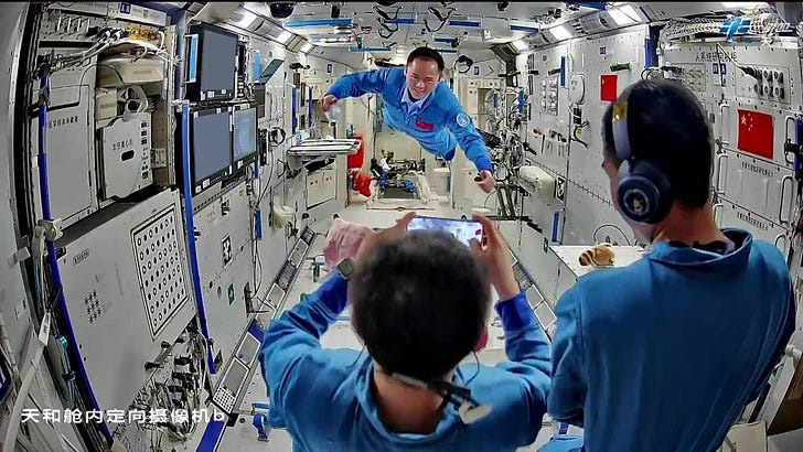 Despite circling the Earth 400 kilometers up, the three taikonauts are taking part in the festivities too.