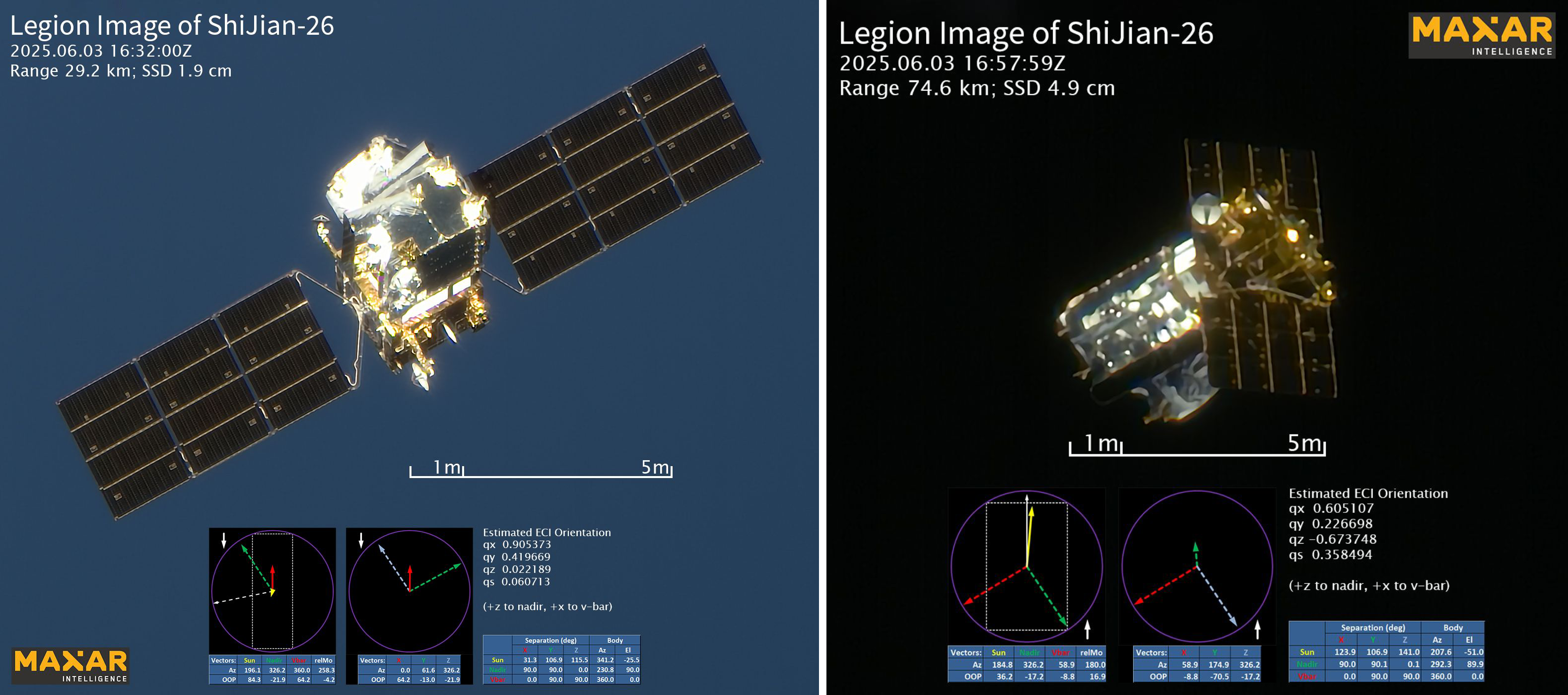 “At an amazing [Spatial Sampling Distance] at 1.9 cm, this is a crystal-clear picture of the [Shijian-26], a Chinese optical remote sensing satellite.” — ”This type of resolution is revolutionary for space situational awareness. The [Shijian-26] represents China's latest generation of optical reconnaissance satellites, and our ability to image it this clearly demonstrates a new era in satellite-to-satellite observation.” — ”This capability fundamentally changes space security for the future.”