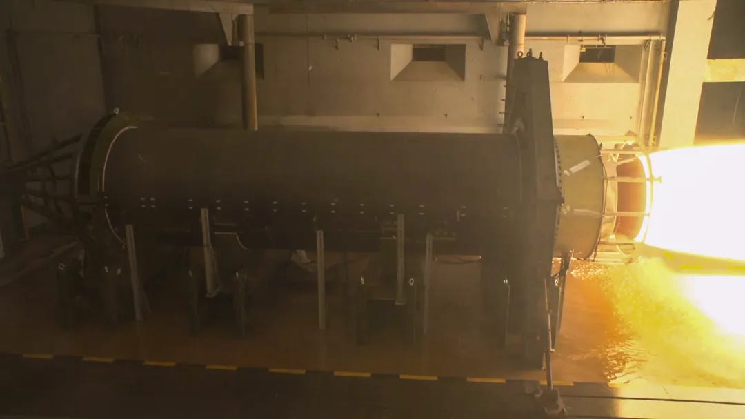 One of Ceres-2’s solid rocket motors undergoing a test firing.