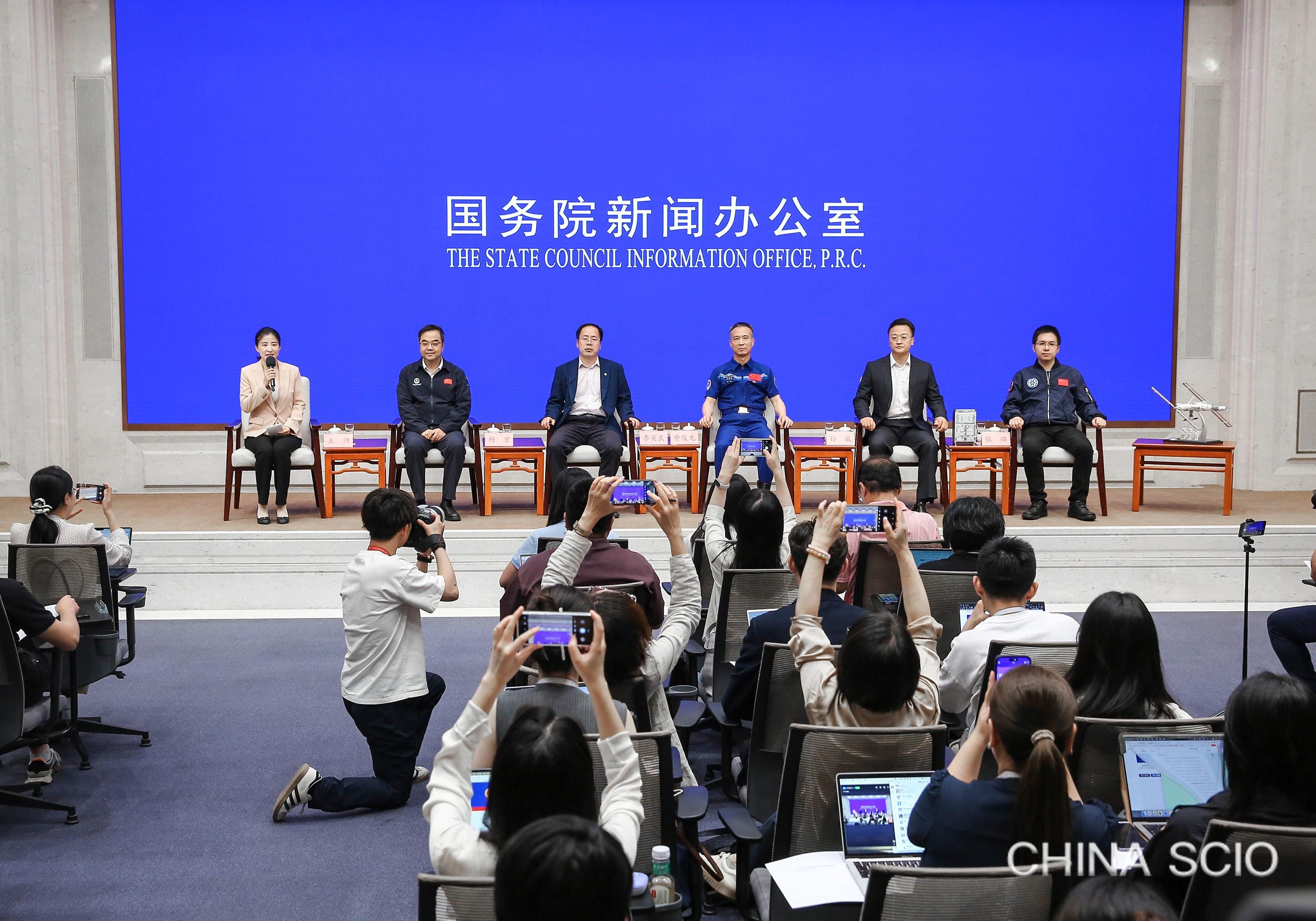 Speaking at the press conference were Yang Hong (杨宏), Chief Designer of the Manned Space Station System of China Manned Space Program and researcher at the China Academy of Space Technology of China Aerospace Science and Technology Corporation, Li Yingliang (李英良), Director and researcher at the General Technology Bureau of the China Manned Space Engineering Office, Fei Junlong (费俊龙), veteran taikonaut and commander of the Shenzhou-6 and Shenzhou-15 missions, Sun Wei (孙威), Deputy Chief Designer of the Landing Site System of China Manned Space Program and a measurement and control expert, and Zhang Lu (张璐), Assistant to the Chief Commander of the Space Application System of China Manned Space Program and researcher at the Technology and Engineering Center for Space Utilization of the Chinese Academy of Sciences. Wang Shi (王师), from the Press Bureau of the State Council Information Office, was the chairperson for the press conference.